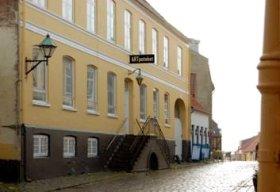 ARTpoteket har til huse i det gamle apotek i Ebeltoft (torvet med Det gamle RÃ¥dhus skelnes i baggrunden).