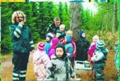 Det er relativt sjældent, at der optræder børnehavebørn under »Ugen der gik« - heldigvis da - men ingen regel uden undtagelse. Således gjode denne flok børnehavebørn fra Børnehaven Landsbyen i Grenaa sig fortjent til en lille dusør, idet de under en gårtur i Grenaa Plantage tirsdag i sidste uge fandt et stjålet kasseapparat, der angiveligt stammer fra et indbrud i oktober måned ved Hotel Havlund.
