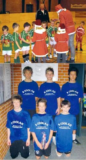 På disse billeder fra 2007-udgaven af Intersport Cup I Åstrup Hallen ses B COOL, som vandt U14-rækken, og julemanden med nissepiger, der forestod præmieoverrækkelsen i de mindste årgange.