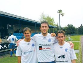 Tre GIF-profiler fra 1-1 kampen mod Middelfart. Fra venstre Jesper Laursen, der spillede kamp nr. 100 for GIF, i midten målscorer Anders Kaagh og til højre dagens GIF'er, Marc Maze.