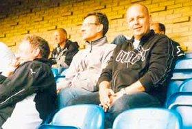 Dansk Træner Unions konsulent ved trænertræffet på Grenaa Stadion var Jan Thomsen, Grenaa (til højre). Han var meget imponeret over de perfekte forhold til arrangementet, der havde samlet 69 trænere fra hele landet. Fra tilskuerpladserne fulgte trænerne Kent Nielsens instruktioner af GIF-spillerne.